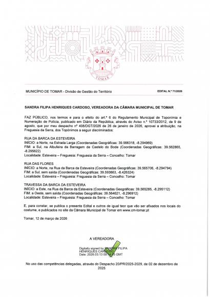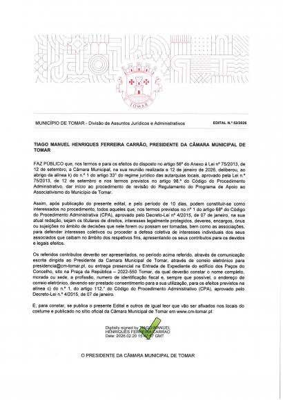 Edital nº 52/2026 - Município de Tomar - Divisão de Assuntos Jurídicos e Administrativos